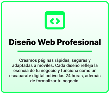 Diseñamos páginas web modernas, funcionales y adaptadas a tu negocio, con ello te ayudamos a destacar, conectar con tus clientes y hacer crecer tu marca online.